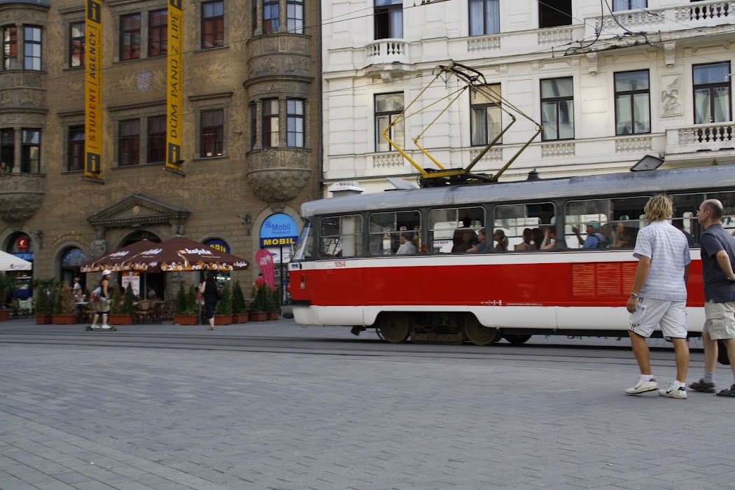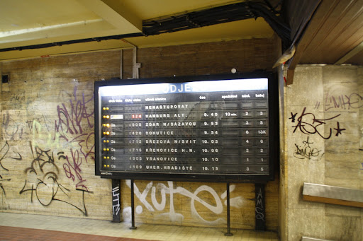 Den ersten Teil der Fahrt nach Brünn (den in diesen heißen, polnischen Regionalzügen mit den eleganten roten Hartschalensitzen) habe ich ja bereits beschrieben. Positiv ist anzumerken: Es wurde besser. In Bohumin, kurz hinter der tschechischen Grenze, wartete ein um Welten besserer Zug. Wir schnappten uns ein Abteil und machten es uns bequem. Nach etwa zweistündiger Fahrt erreichten wir „Brno hlavni nadrazni“.