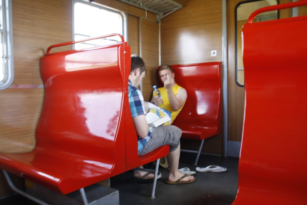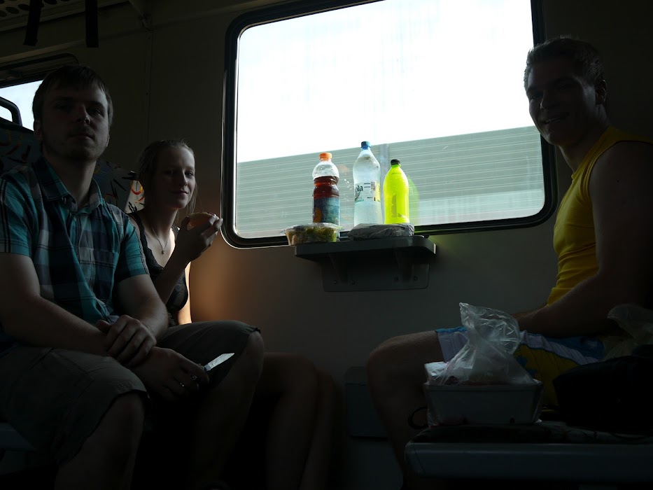 Unser erster Mitreisender des Tages saß bereits im Abteil und wirkte recht amüsiert, als wir vor seinen Augen ein 3/4 Brot, eine Packung Hochland Schmelzkäse und eine halbe Pfeffersalami verspeisten.