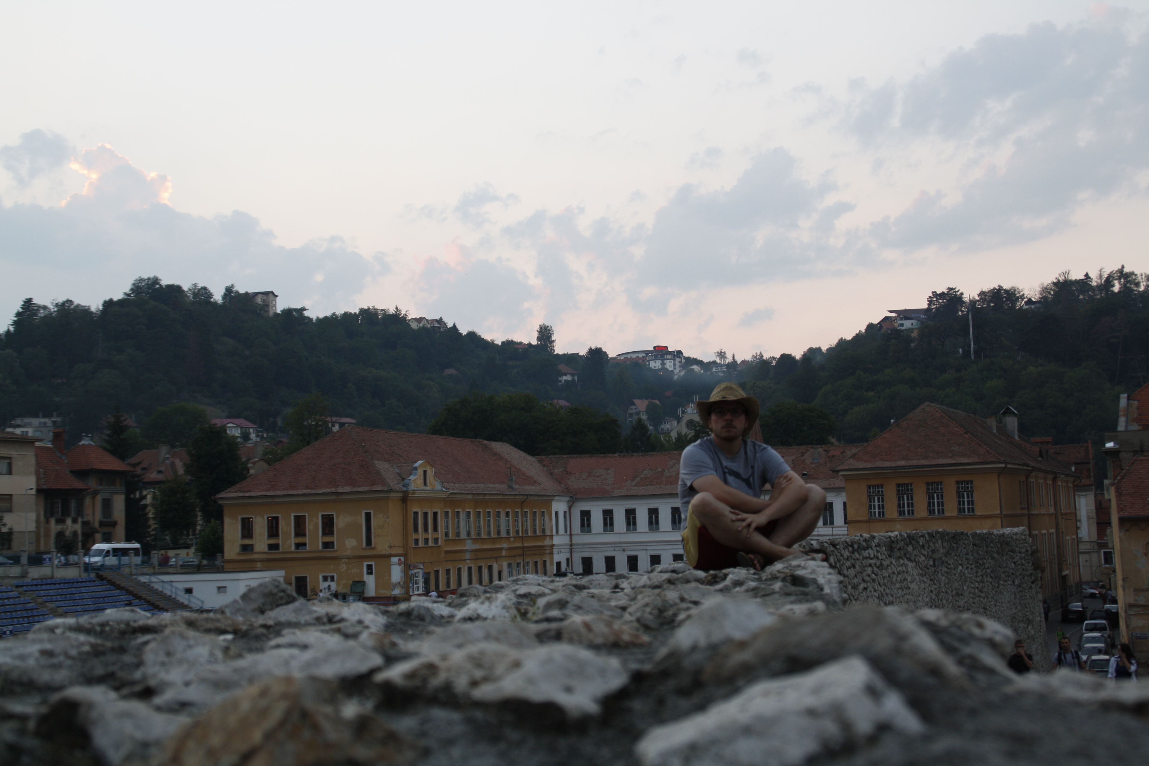 Wir suchten uns ein nettes Lokal, bestellten jeder ein Bier und etwas typisch Rumänisches zu Essen (Empfohlen vom Kellner. Er muss wohl ein Doppelleben führen, wir sind uns sicher, es war der Schauspieler Simon Pegg). Es gab eine Art lange Klopse mit Pommes und Ketchup/Senf. Leute beobachtend, ging die Zeit schnell rum, die Gläser leerten sich und unsere Bäuche waren dem Platzen nahe. Also war es angebracht, sich noch etwas zu bewegen und wir schlenderten durch die Stadt und rund um einen öffentlichen Sportplatz. Dort knipsten wir noch etwas durch die Gegend und beobachteten die Hunde, die hier anscheinend frei herumlaufen. Auf dem Marktplatz suchten wir uns dann auf einer Treppe noch ein Plätzchen und sahen Jung und Alt an uns vorüberziehen. Als wir davon genug hatten, kauften wir uns noch einen kleinen Biervorrat, den wir im Hostel erst auf der Terrasse und dann im Hobbykeller leerten.