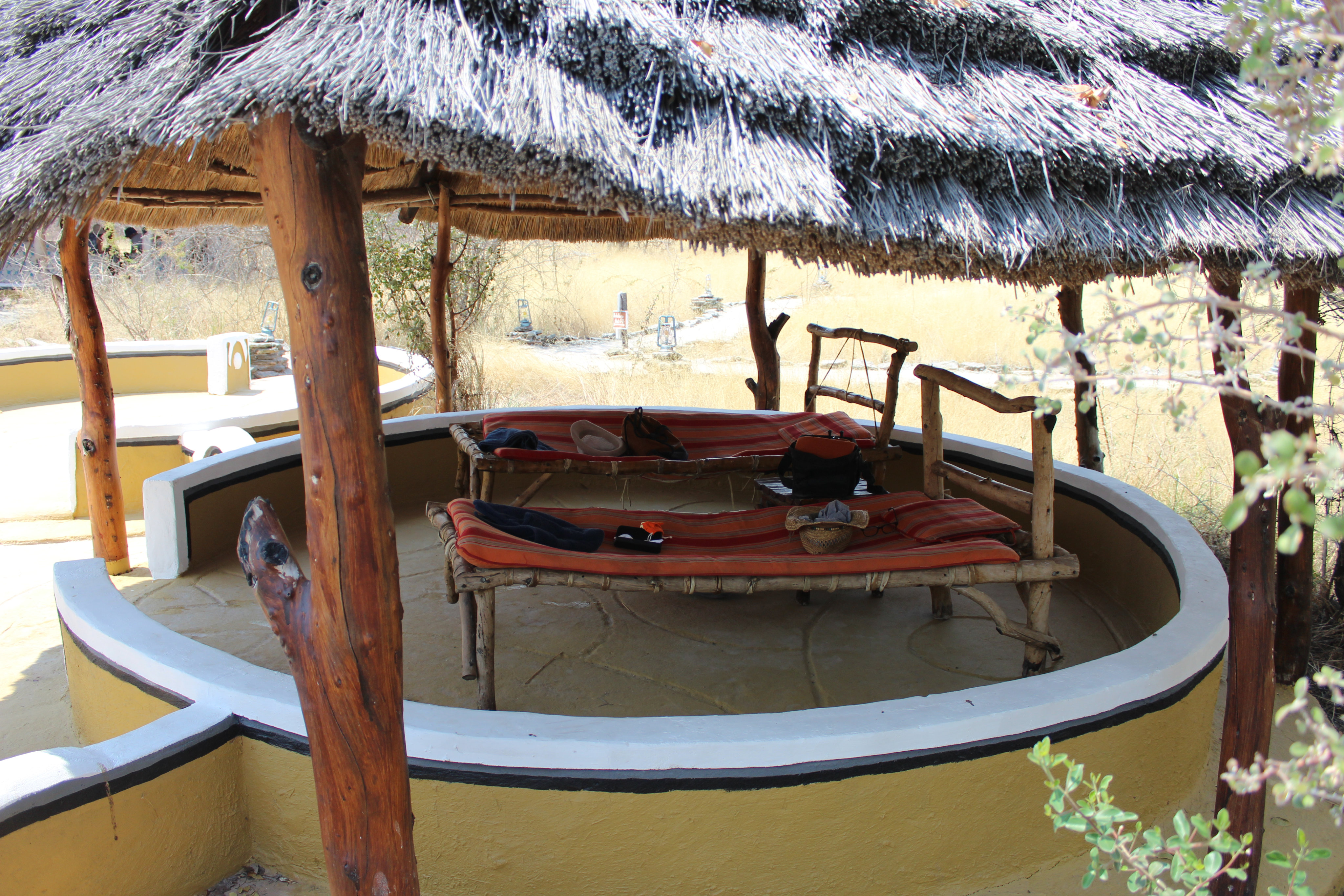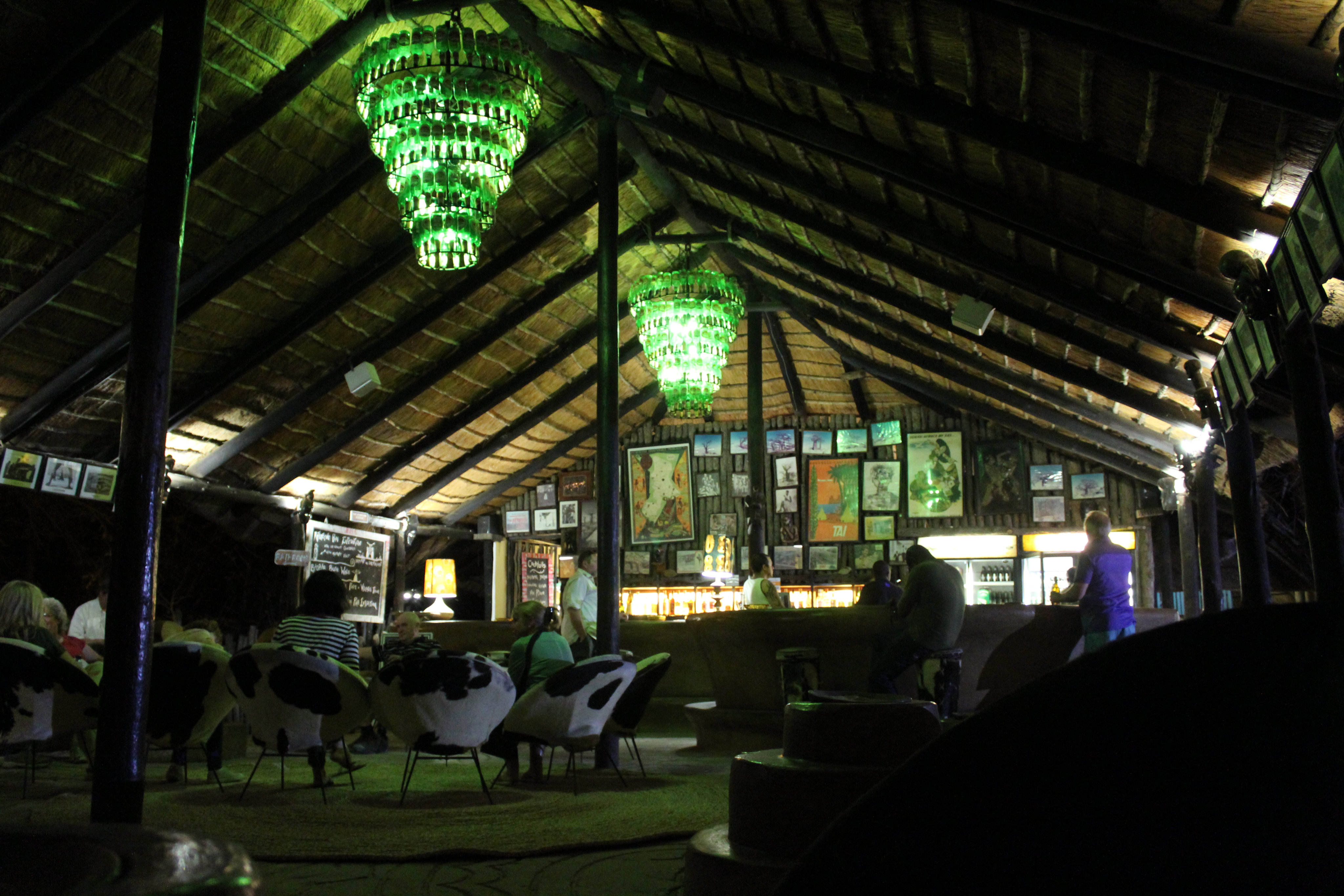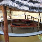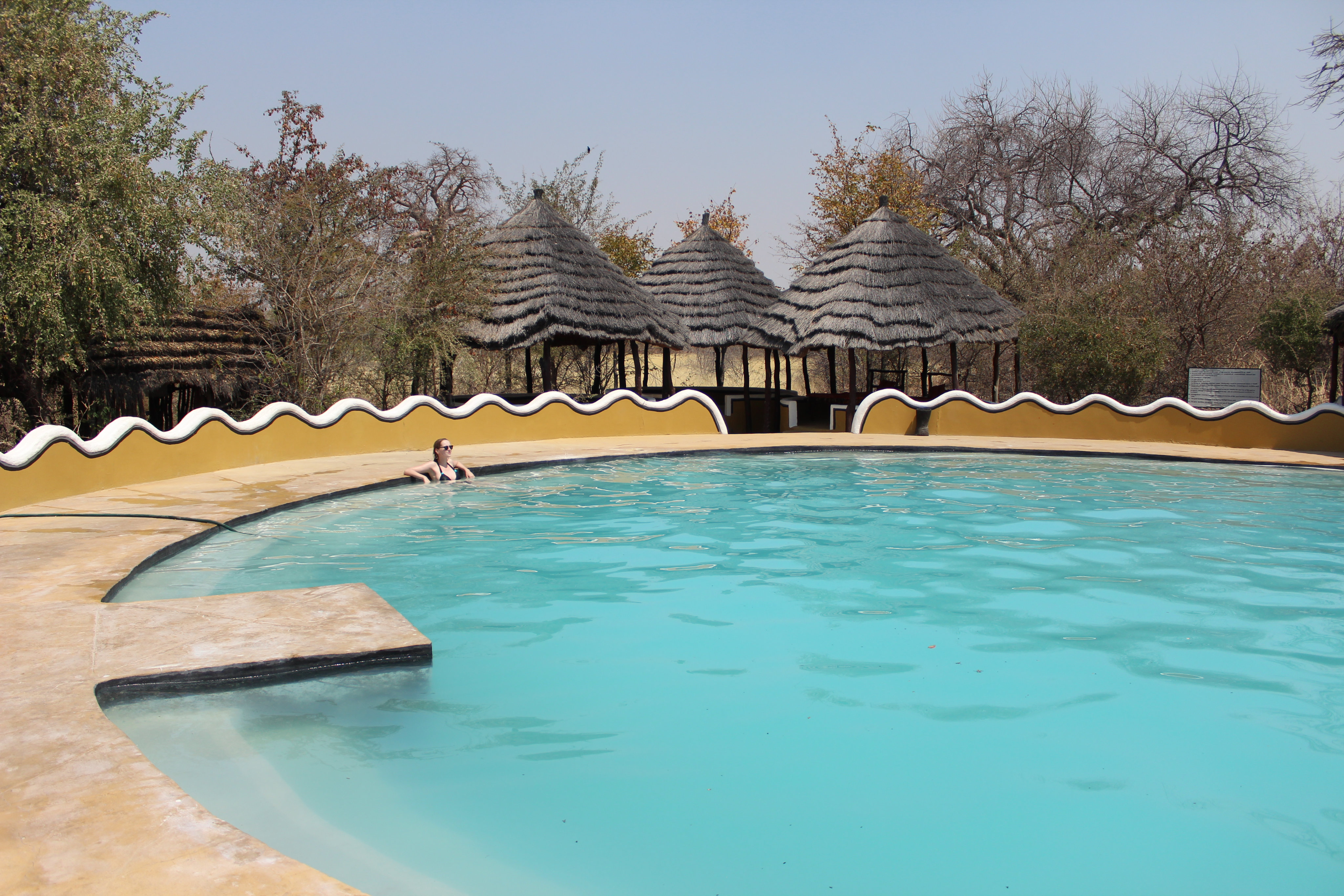 Planet Baobab war die bis dahin luxeriöseste Unterkunft: Ein schattenspendendes Dach am Campsite, eine große Bar mit Bierflaschen-Kronleuchtern, ein Restaurant (in dem wir zwei Mal fantastisch gegessen haben) und eben der große, kühle Pool ließen uns die Strapazen der Anreise vergessen.