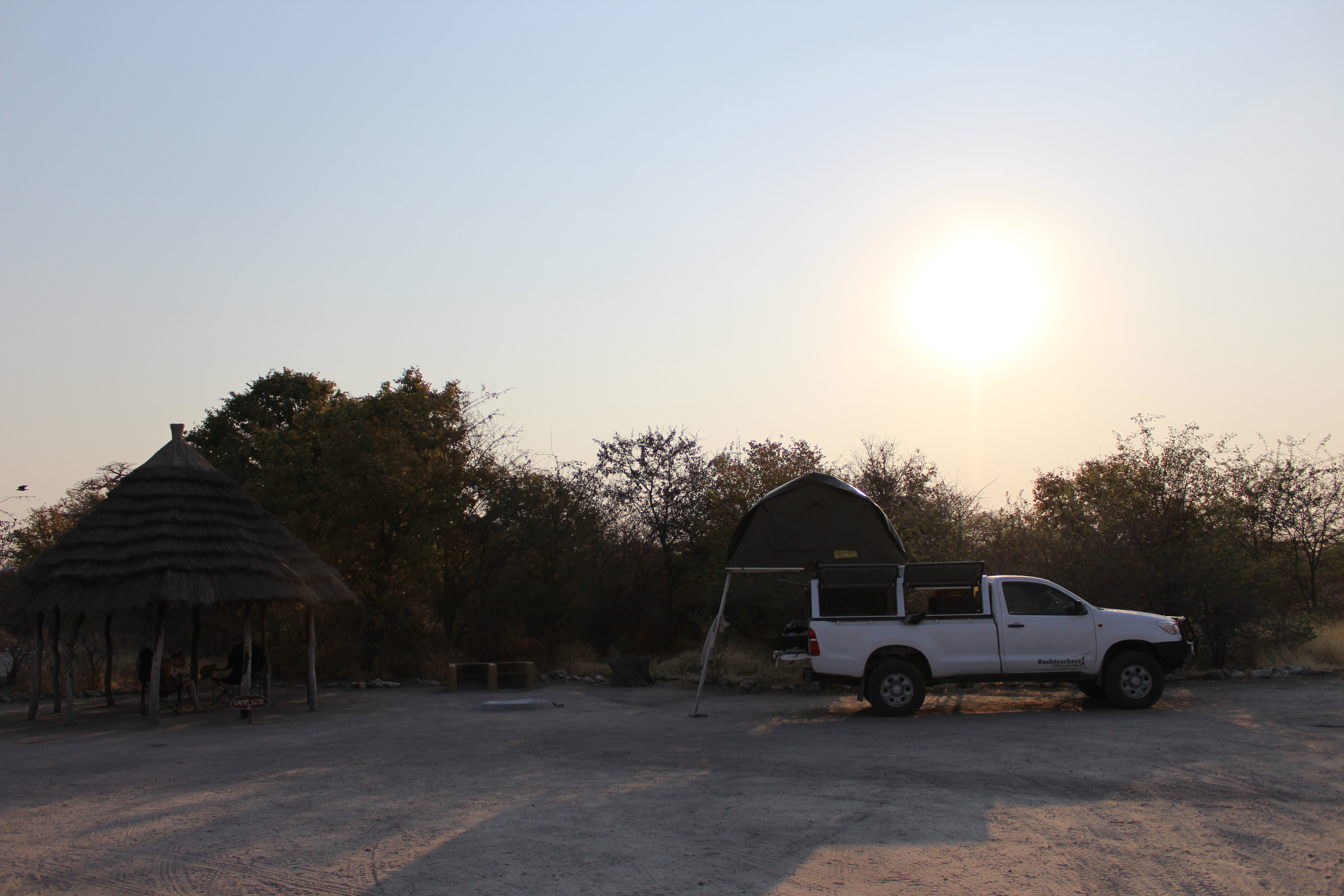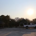 Die Fahrt von Kubu Island durch die Pfanne war anstrengend, aber gar nichts im Vergleich zu dem was uns auf unserem “kleinen” Umweg zum (gefallenen) Chapmans Baobab und den Greens’ Baobabs erwartete: Tiefer, tiefer, tiefer Sand. Unser treuer Hilux hatte auch in den Low Range Gears heftig zu kämpfen und wirbelte riesige Staubwolken auf, als er sich schaukelend seinen Weg bahnte. Resultat: Unser Auto war nicht mehr weiß, sondern mit einer dicken, schmierigen Staubschicht (von der Konsistenz vergleichbar mit Asche) überzogen. Der Staub war natürlich auch durch alle Ritzen gekommen und so nutzten wir unseren Aufenthalt auf dem Planet nicht nur zum Entspannen, sondern auch zum Putzen.
