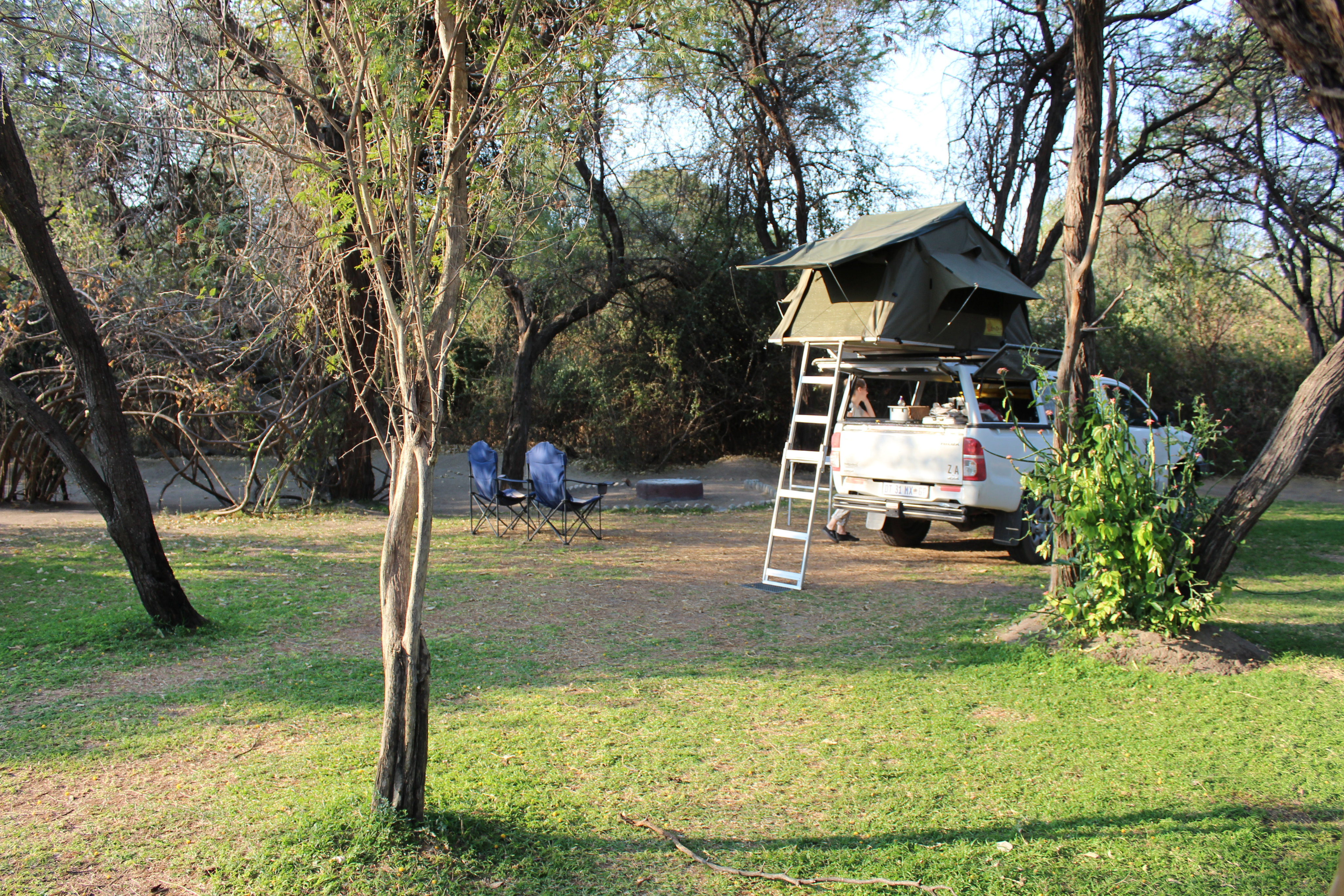 Das Glück jedoch war mit uns, und plötzlich hatten wir einen schönen, großen Campsite, mit eigener Dusche und WC unweit der Guma Lagoon. In 2 Fußminuten konnten wir zur Bar auf deren Terrasse es grausiges WLAN und einen wundervollen Ausblick auf das Delta gab. Achja.